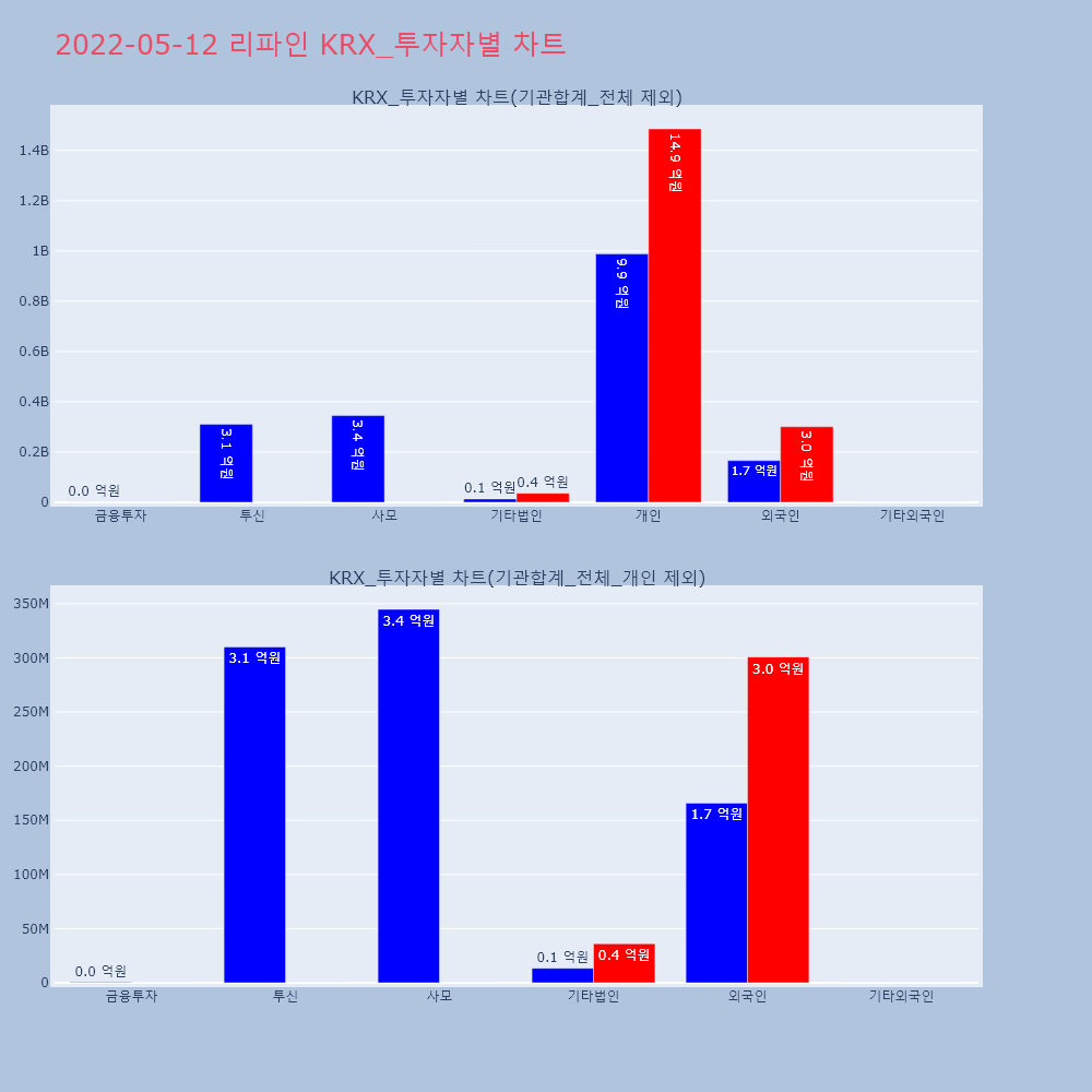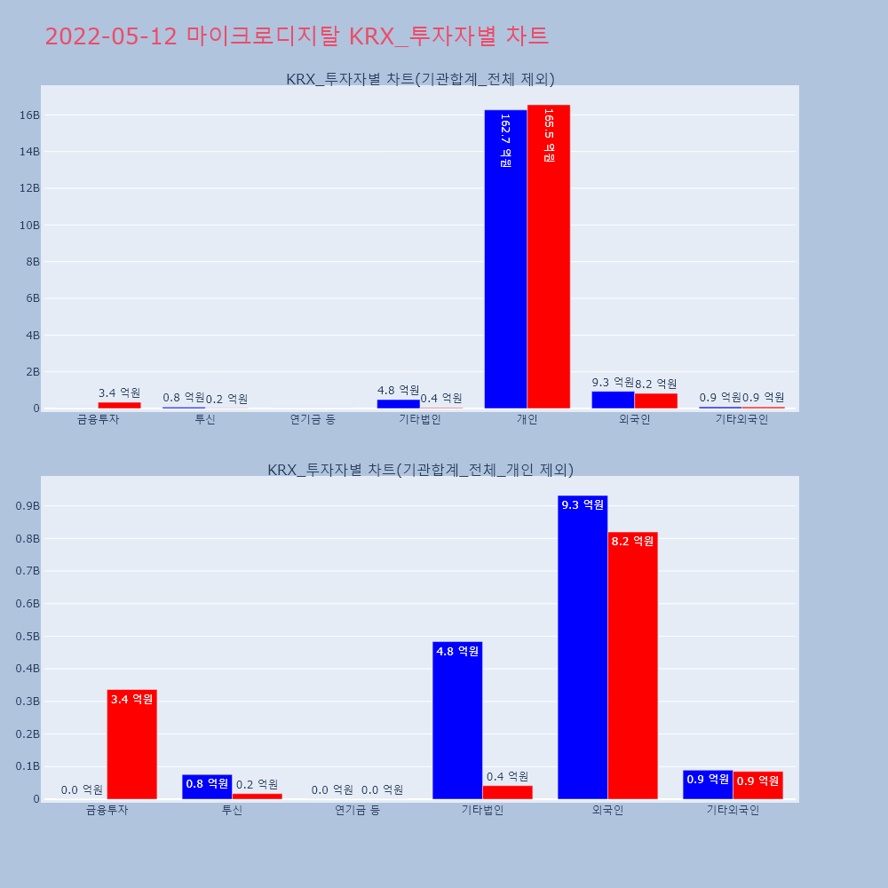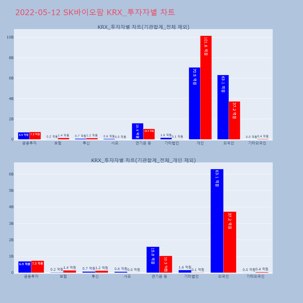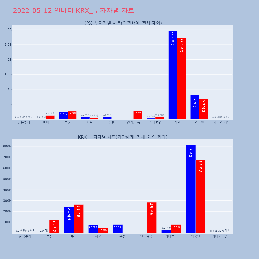| 투자기관 | 거래량_매도 | 거래량_매수 | 거래량_순매수 | 거래대금_매도 | 거래대금_매수 | 거래대금_순매수 |