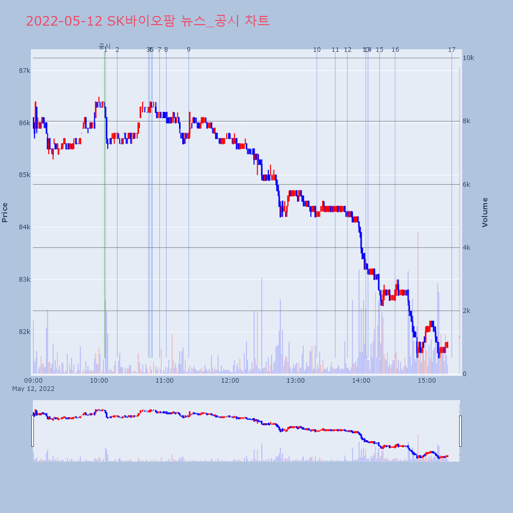 | 14 | SK바이오팜, 뇌전증 신약 성장에도 1분기 영업익 적자전환 제목 : SK바이오팜, 뇌전증 신약 성장에도 1분기 영 | 인포스탁 | SK바이오팜 | 2022-05-12 14:06:15 |