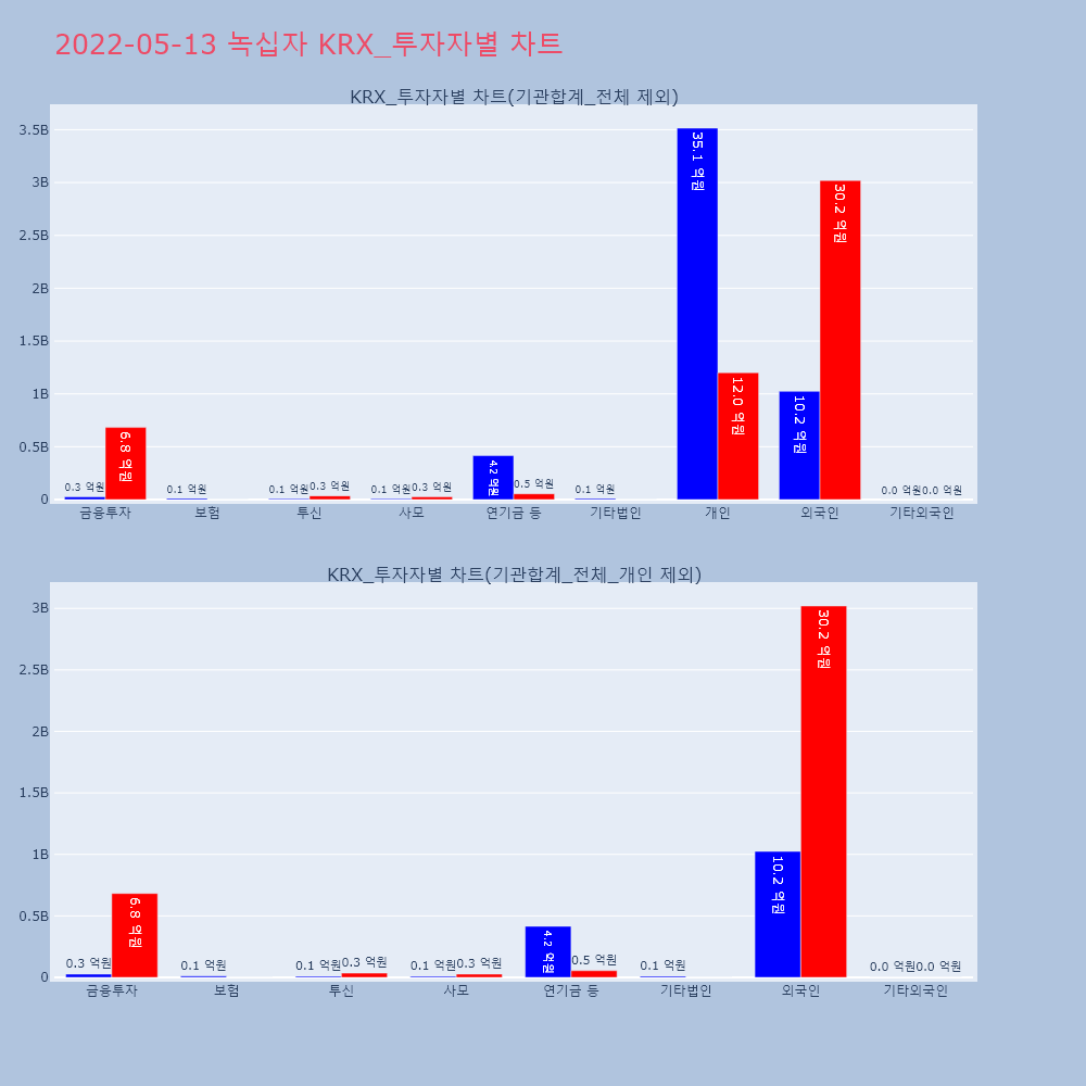 | 투자기관 | 거래량_매도 | 거래량_매수 | 거래량_순매수 | 거래대금_매도 | 거래대금_매수 | 거래대금_순매수 |
