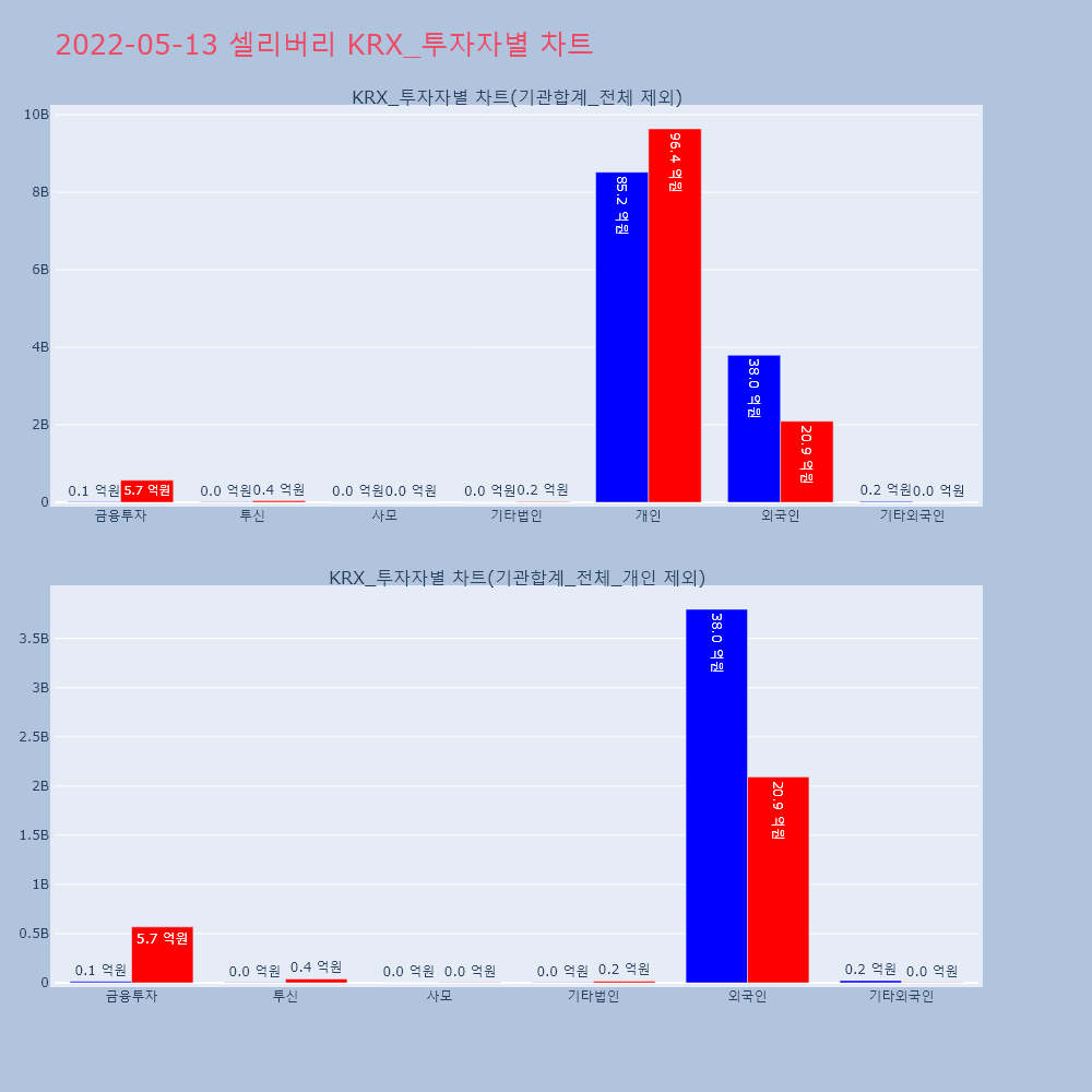 | 개인 | 400,616 | 228,211 | -172,405 | 6,095,964,300 | 3,479,803,500 | -2,616,160,800 |