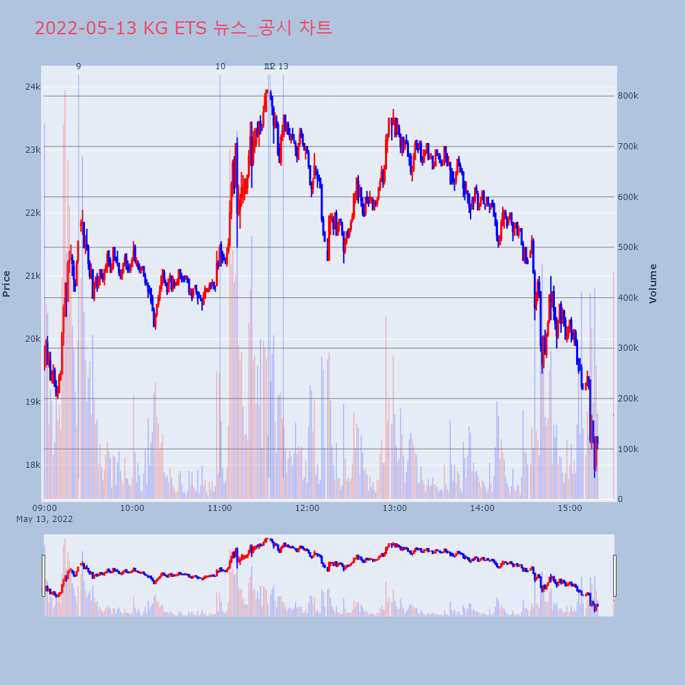 | 7 | KG ETS(151860) +18.50%, KG케미칼 +11.80%, KG모빌리언스 +6.17%, KG스틸제목 : KG ETS(151860)+18.50%, KG | 인포스탁 | KG ETS | 2022-05-13 11:33:23 |