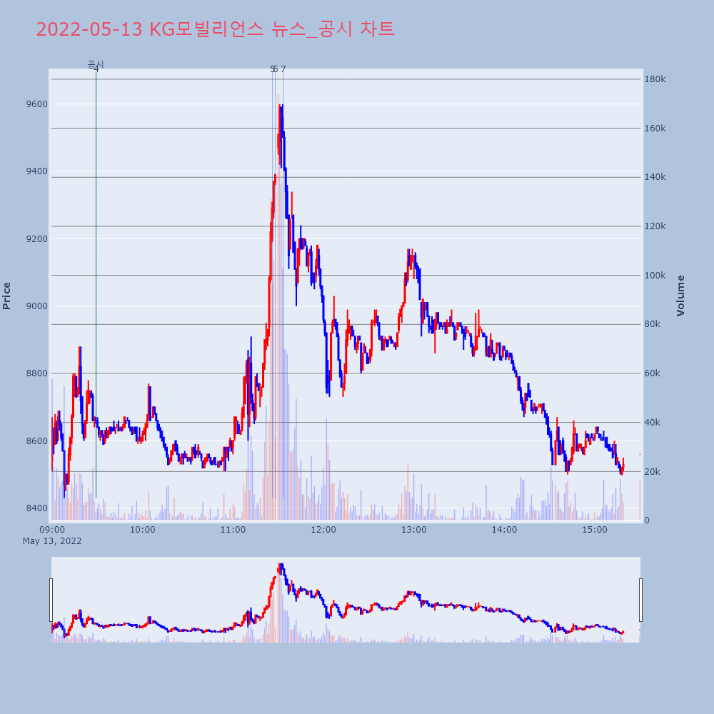 | 3 | KG모빌리언스, +9.79% VI 발동KG모빌리언스(046440)가 VI가 발동했다. 전일 | 조선경제 | KG모빌리언스 | 2022-05-12 14:02:14 |