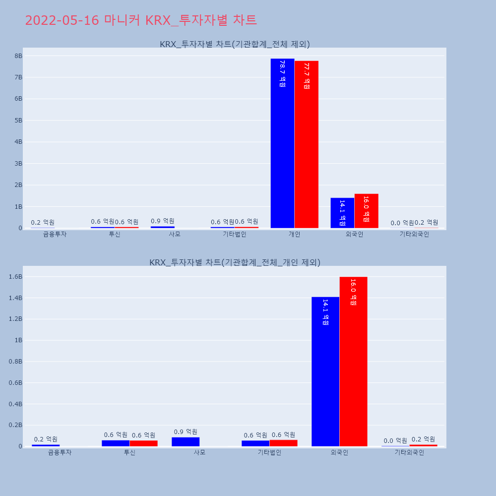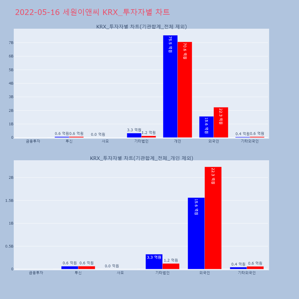 | 투자기관 | 거래량_매도 | 거래량_매수 | 거래량_순매수 | 거래대금_매도 | 거래대금_매수 | 거래대금_순매수 |
