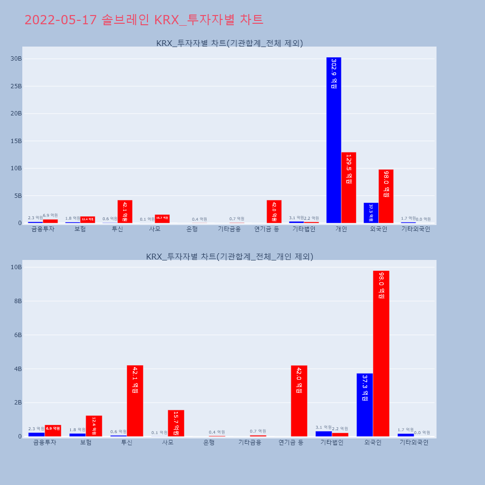 | 투자기관 | 거래량_매도 | 거래량_매수 | 거래량_순매수 | 거래대금_매도 | 거래대금_매수 | 거래대금_순매수 |