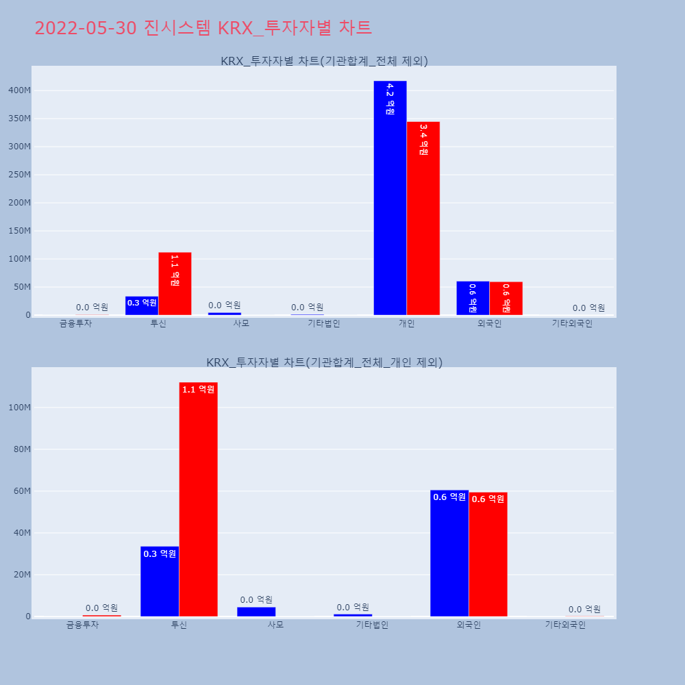 | 투자기관 | 거래량_매도 | 거래량_매수 | 거래량_순매수 | 거래대금_매도 | 거래대금_매수 | 거래대금_순매수 |