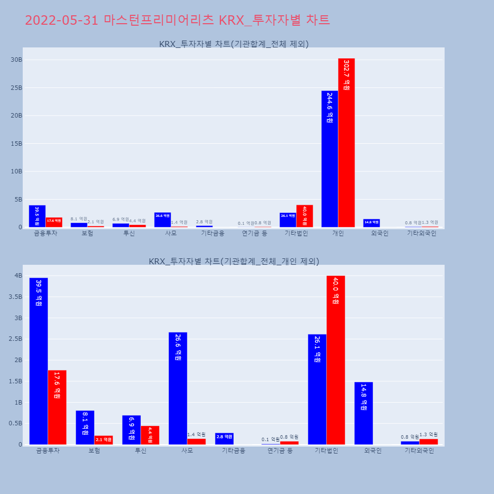 | 투자기관 | 거래량_매도 | 거래량_매수 | 거래량_순매수 | 거래대금_매도 | 거래대금_매수 | 거래대금_순매수 |