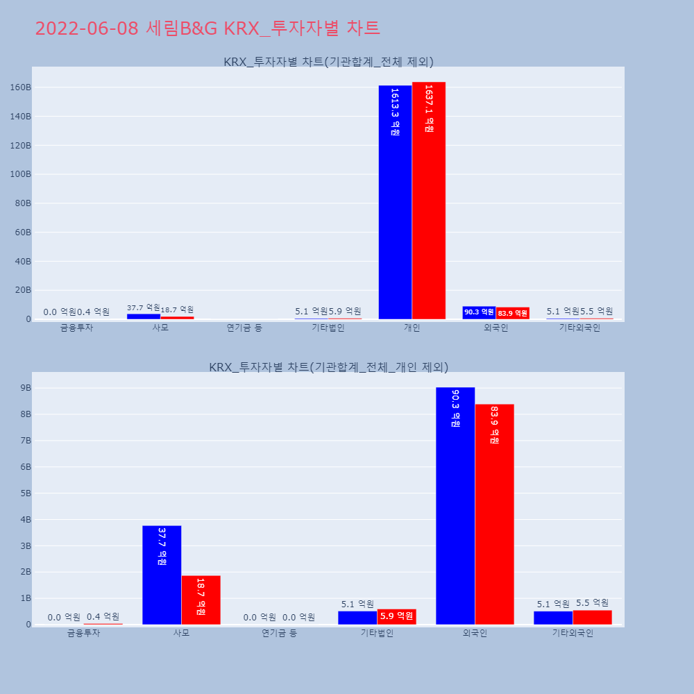 | 투자기관 | 거래량_매도 | 거래량_매수 | 거래량_순매수 | 거래대금_매도 | 거래대금_매수 | 거래대금_순매수 |