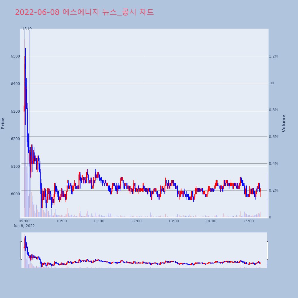 | 4 | 에스에너지, +15.11% VI 발동에스에너지(095910)가 VI가 발동했다. 전일 대비 | 조선경제 | 에스에너지 | 2022-06-07 09:22:14 |