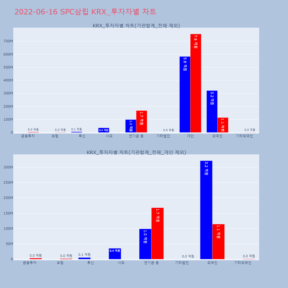 | 투자기관 | 거래량_매도 | 거래량_매수 | 거래량_순매수 | 거래대금_매도 | 거래대금_매수 | 거래대금_순매수 |