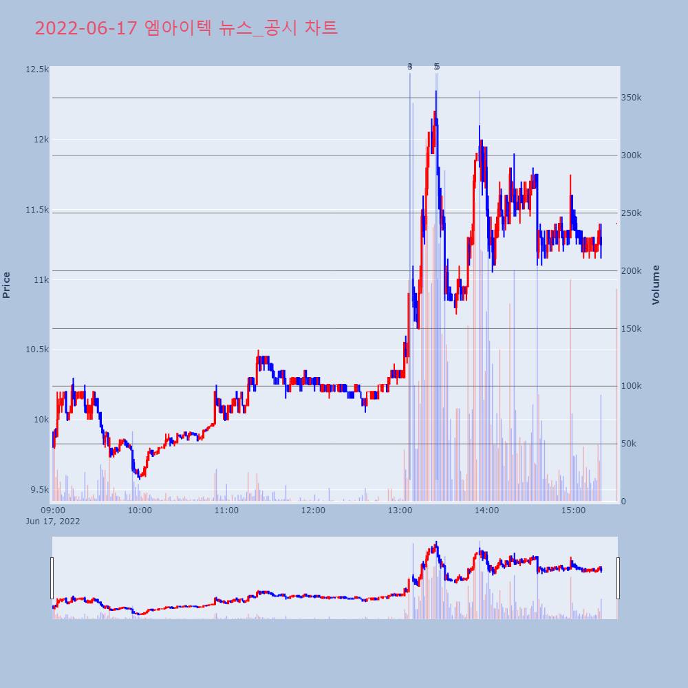 | 6 | '엠아이텍' 52주 신고가 경신, 단기·중기 이평선 정배열로 상승세◆ 차트 분석- 단기·중기 이평선 정배열로 상승세 | 한경/증권 | 엠아이텍 | 2022-06-17 13:26:10 |