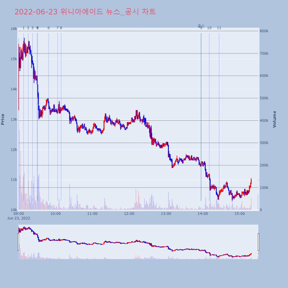 | 11 | 위니아에이드, 코스닥 상장 기념 고객감사 대축제 제목 : 위니아에이드, 코스닥 상장 기념 고객감사 대축 | 인포스탁 | 위니아에이드 | 2022-06-23 14:26:36 |