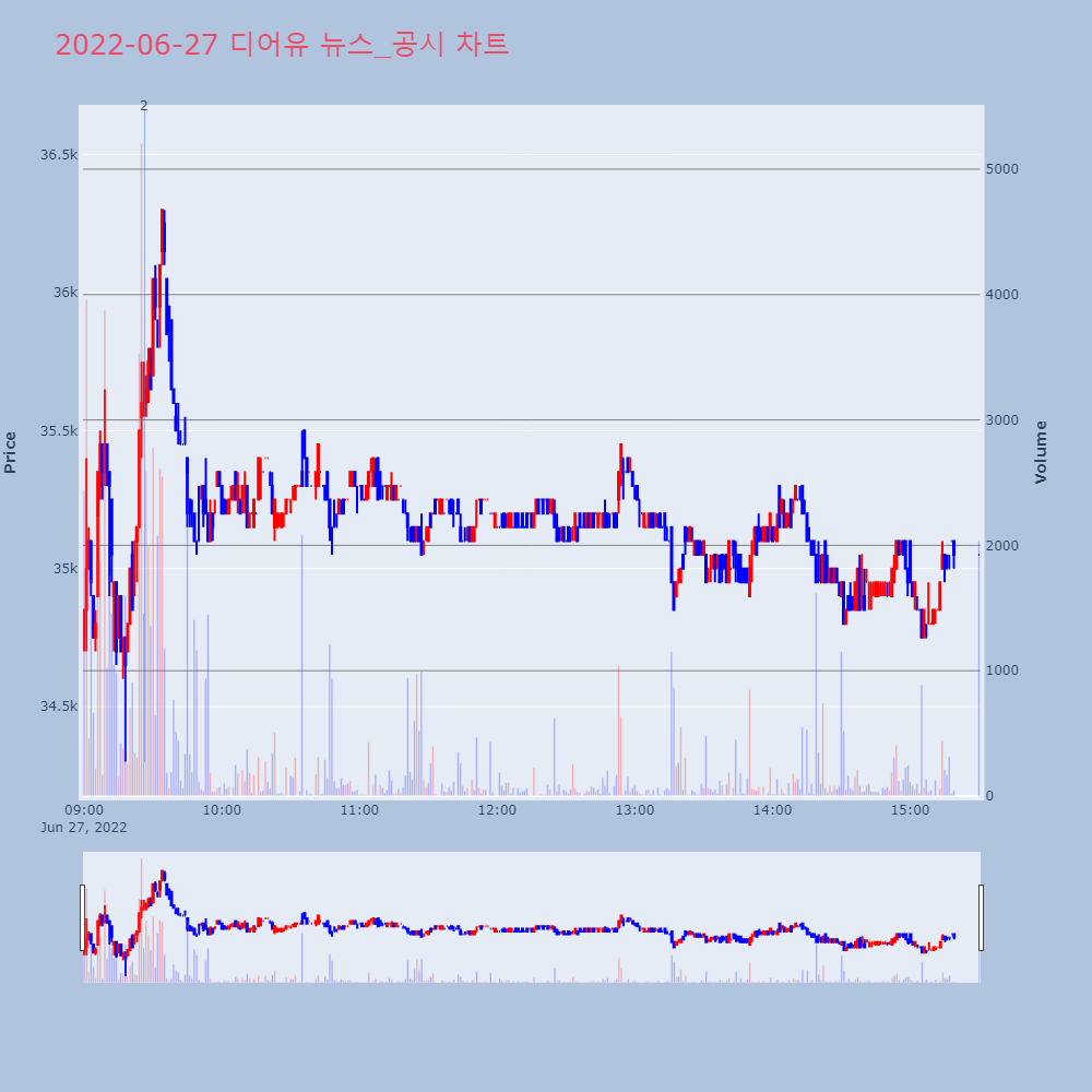 | 2 | 디어유(376300) 소폭 상승세 +5.45% 제목 : 디어유(376300)소폭 상승세 +5.45%기 | 인포스탁 | 디어유 | 2022-06-27 09:26:21 |