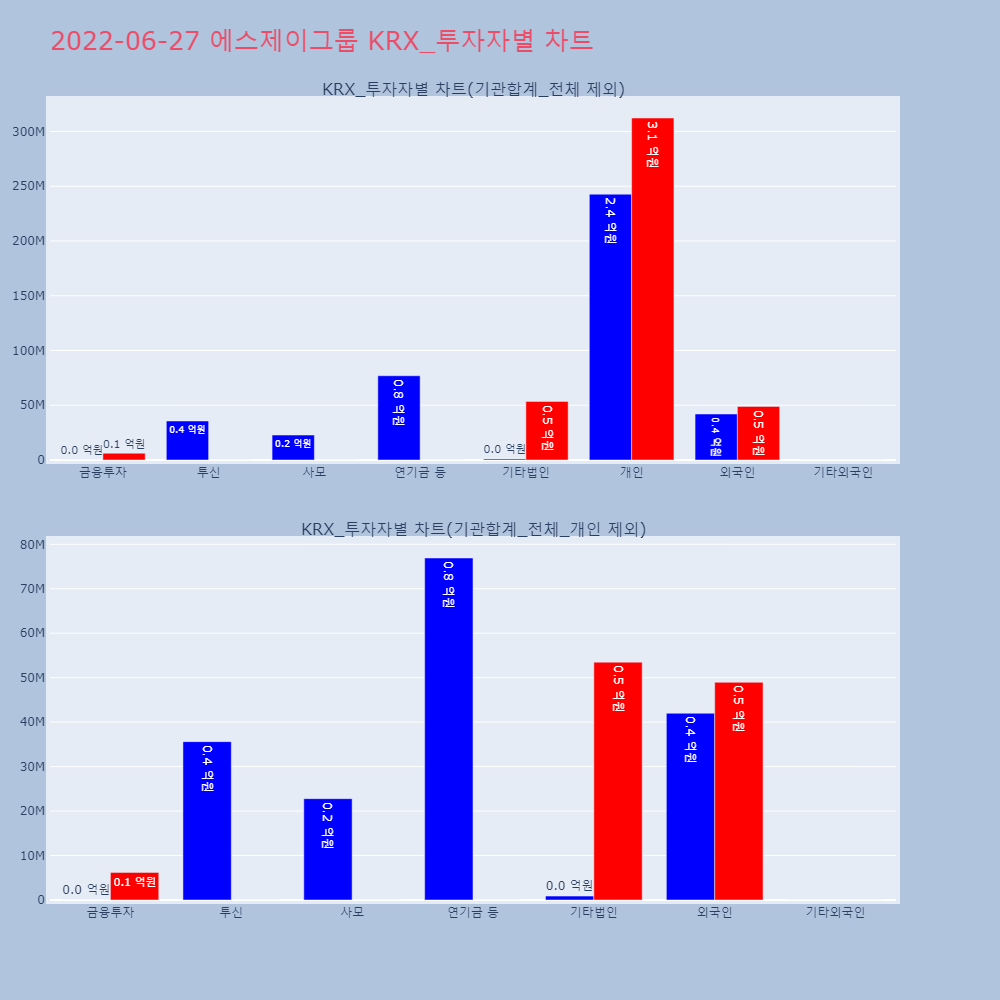 | 투자기관 | 거래량_매도 | 거래량_매수 | 거래량_순매수 | 거래대금_매도 | 거래대금_매수 | 거래대금_순매수 |