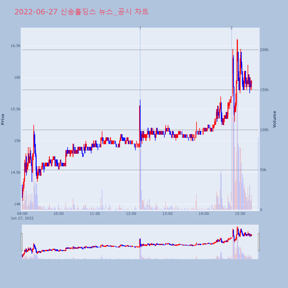 2 | 신송홀딩스, +8.65% VI 발동신송홀딩스(006880)가 VI가 발동했다. 전일 대비 | 조선경제 | 신송홀딩스 | 2022-06-27 14:46:02 |