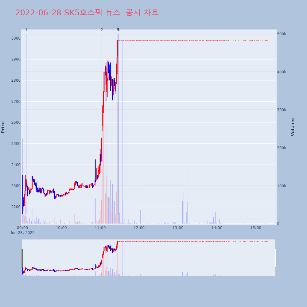 | 2 | SK5호스팩, +9.78% VI 발동SK5호스팩(337450)이 VI가 발동했다. 전일 대 | 조선경제 | SK5호스팩 | 2022-06-28 11:02:35 |