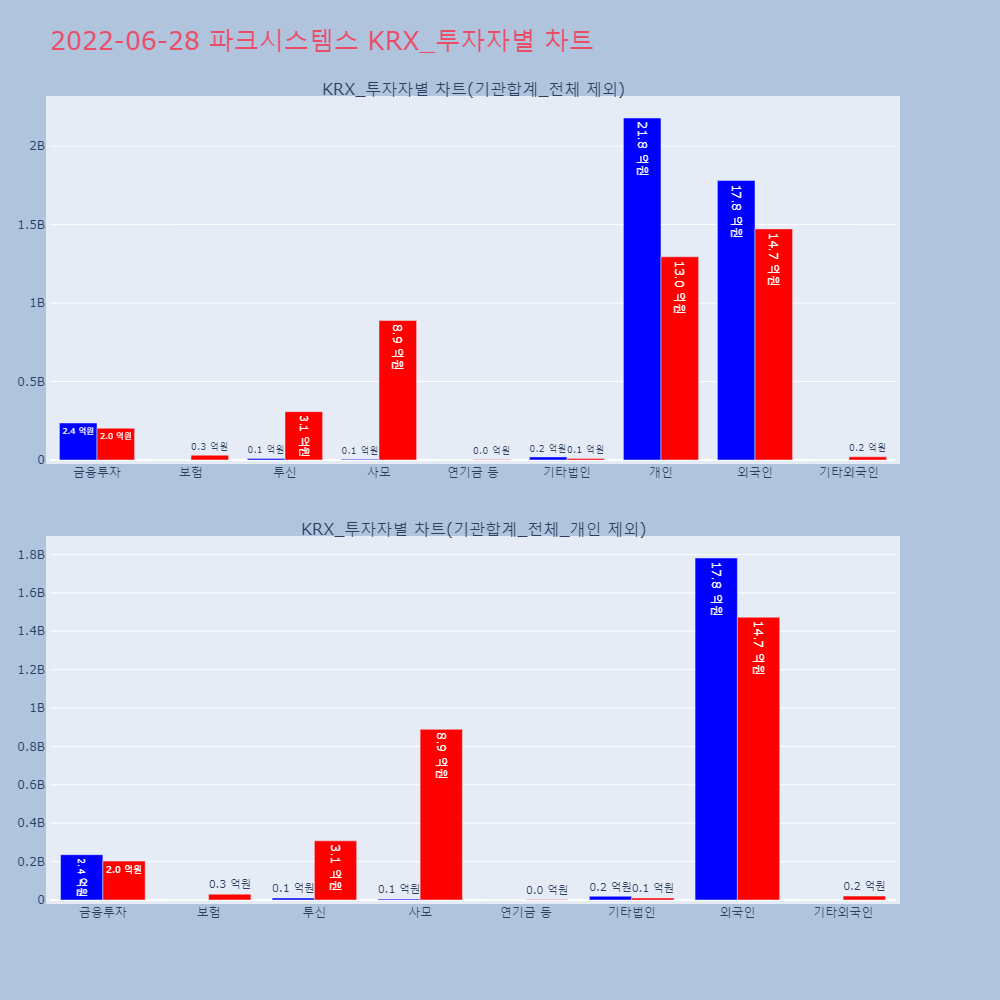 | 개인 | 188,353 | 117,941 | -70,412 | 21,764,462,500 | 13,629,746,000 | -8,134,716,500 |
