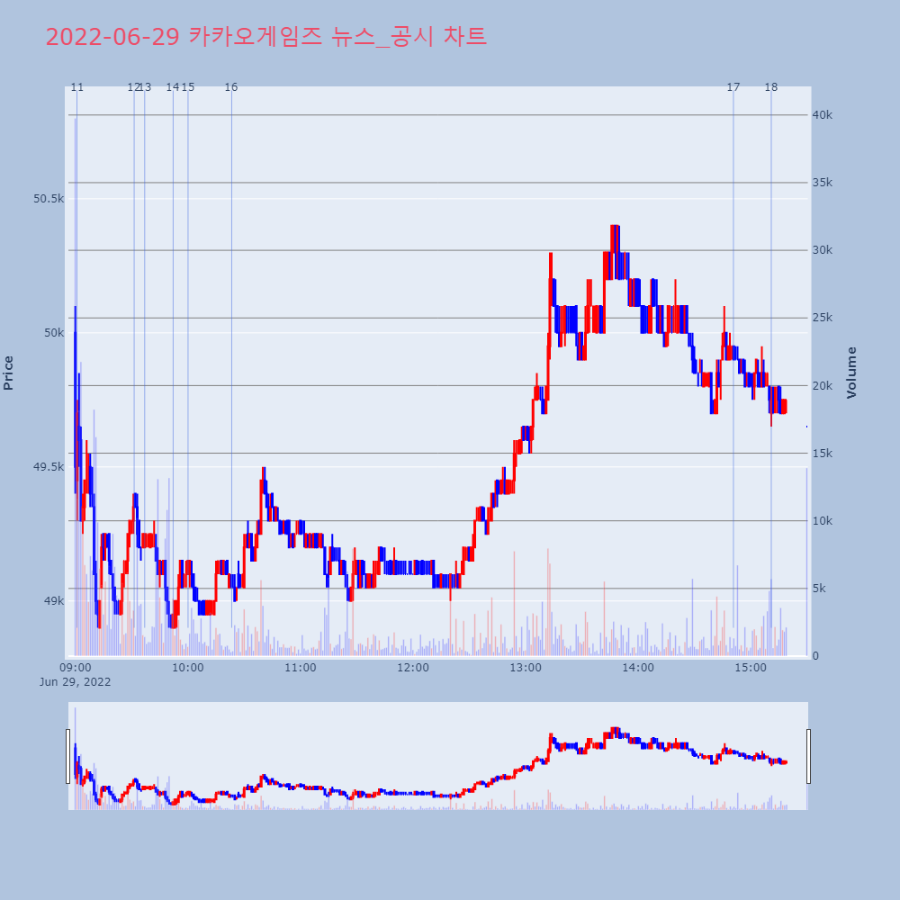 | 15 | [특징주]크래프톤·카카오게임즈, 증권가 목표가 하향에 약세▶ 하이스탁론, 선취수수료 없는 월 0.2%대 최저금리 | 이데일리 | 크래프톤 | 2022-06-29 09:37:01 |