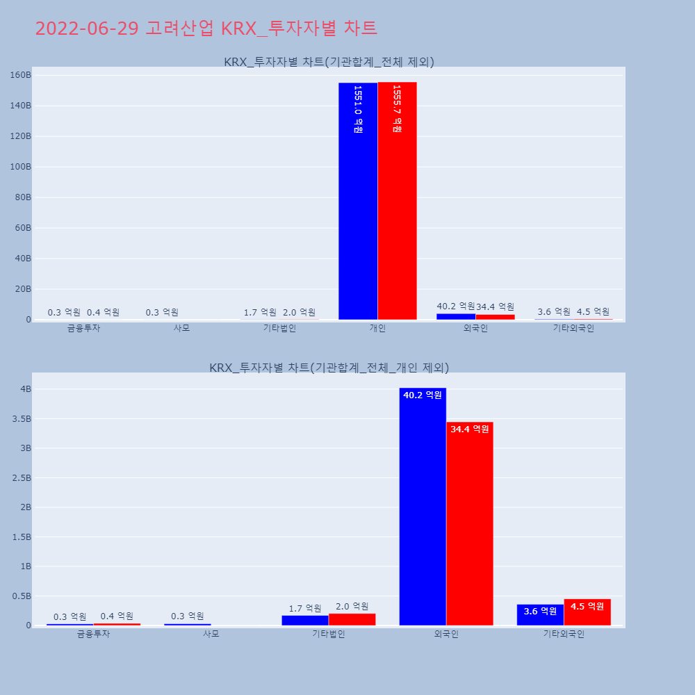 | 투자기관 | 거래량_매도 | 거래량_매수 | 거래량_순매수 | 거래대금_매도 | 거래대금_매수 | 거래대금_순매수 |