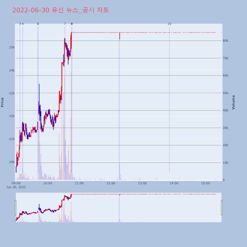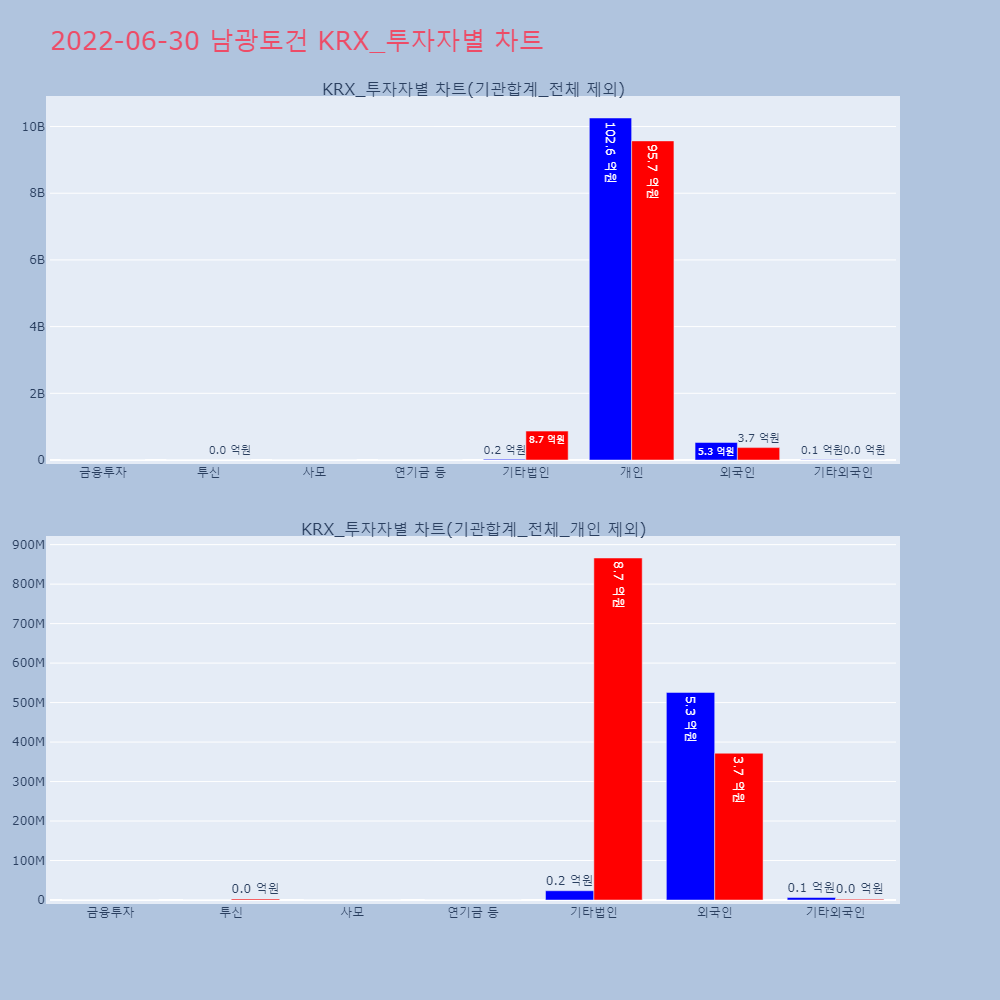 | 7 | [거래량 상위종목] 남광토건, 거래량 전일비 1만193.83%↑…2위 동양철관[버핏연구소=신현숙 기자] 30일 14시 53분 코스피 | 버핏연구소 | 남광토건 | 2022-06-30 14:55:38 |