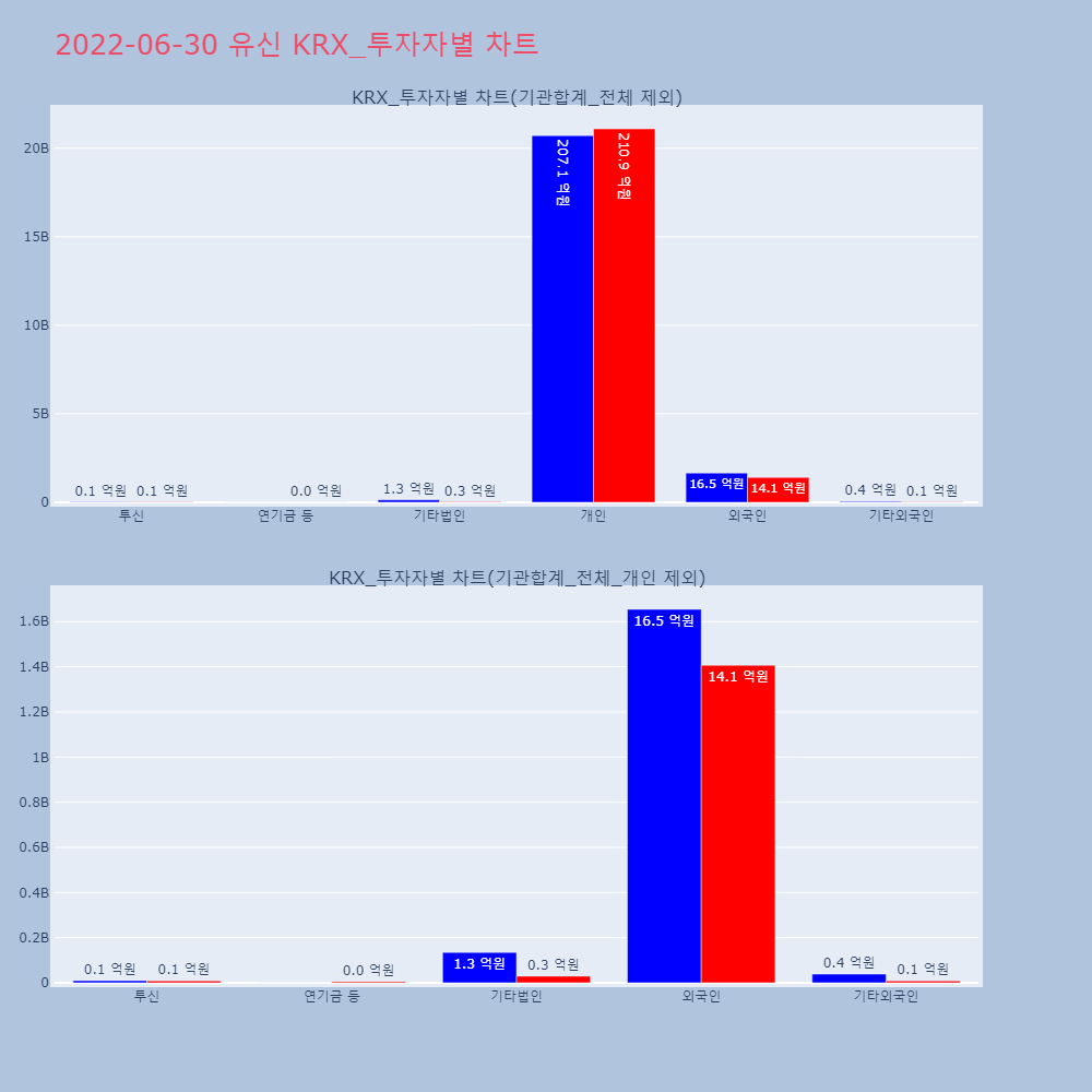 | 투자기관 | 거래량_매도 | 거래량_매수 | 거래량_순매수 | 거래대금_매도 | 거래대금_매수 | 거래대금_순매수 |