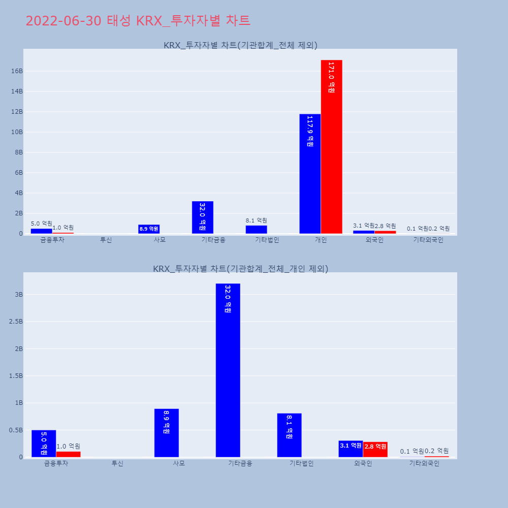 | 투자기관 | 거래량_매도 | 거래량_매수 | 거래량_순매수 | 거래대금_매도 | 거래대금_매수 | 거래대금_순매수 |