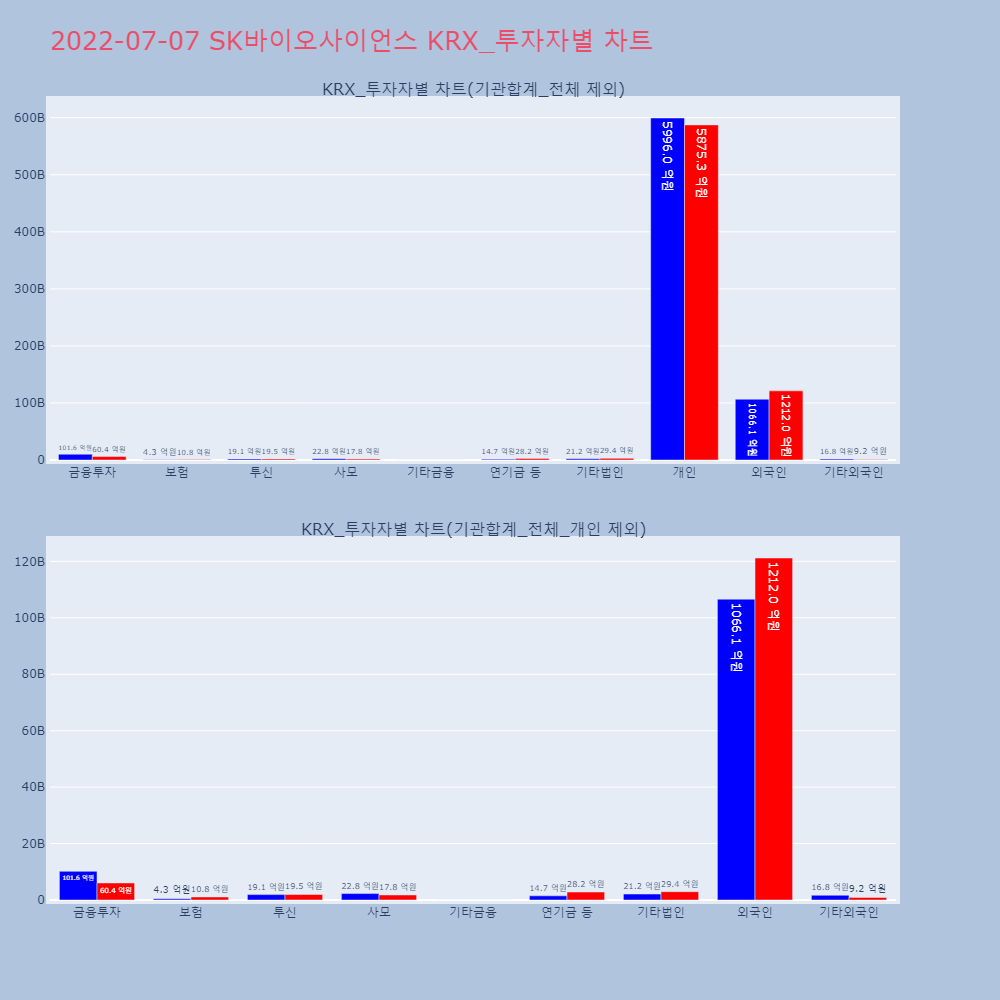 | 기타외국인 | 12,249 | 6,731 | -5,518 | 1,680,766,500 | 924,393,500 | -756,373,000 |