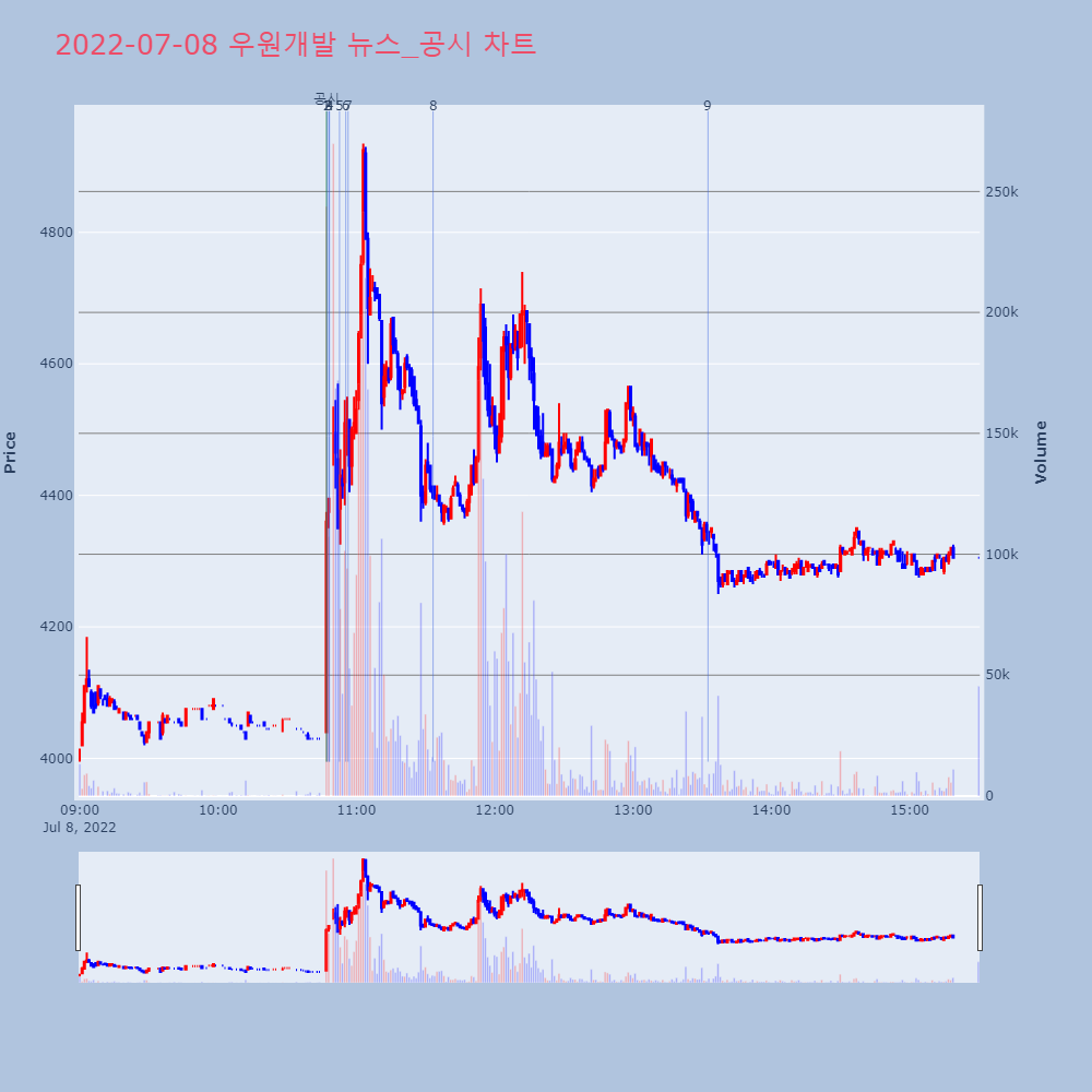 | 8 | 우원개발, 578억 규모 7호선 건설공사 계약▶ 하이스탁론, 선취수수료 없는 월 0.2%대 최저금리 | 이데일리 | 우원개발 | 2022-07-08 11:33:17 |