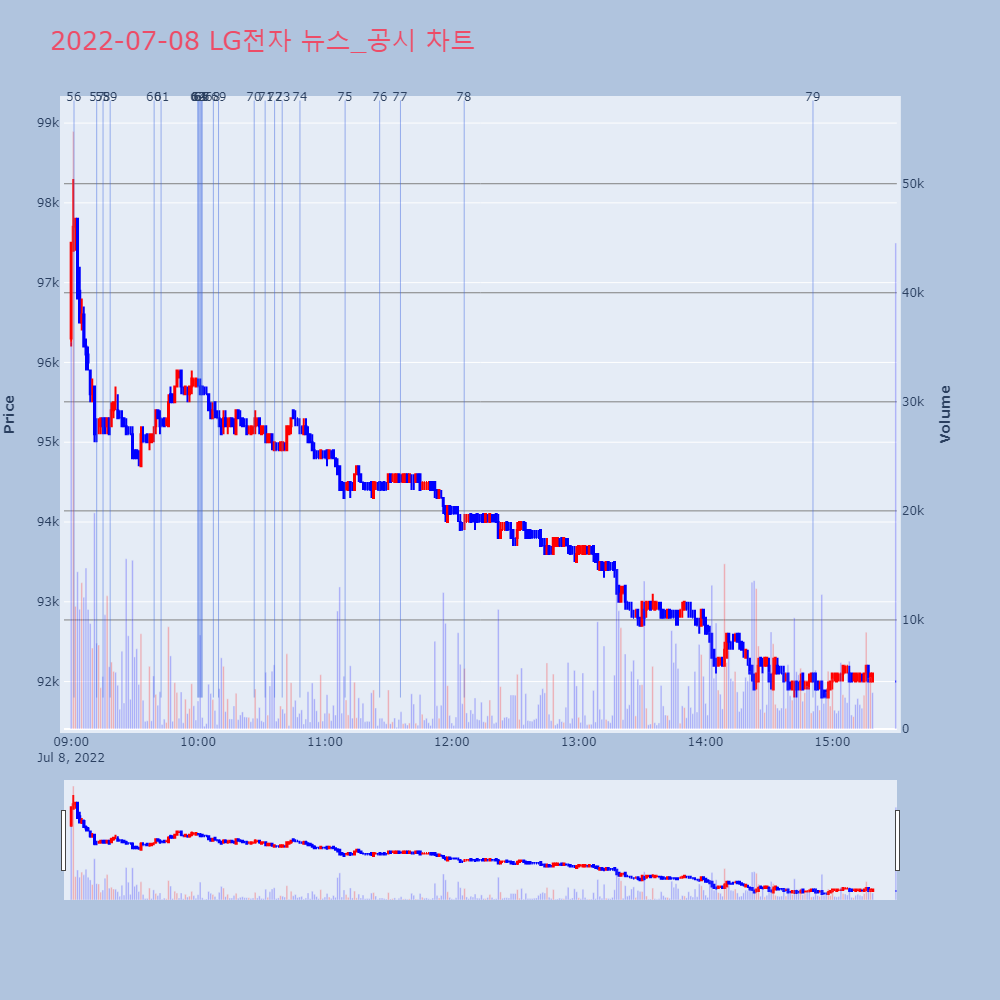 | 4 | [장중수급포착] LG전자, 외국인/기관 동시 순매수… 주가 +1.61% [서울=뉴스핌] 로보뉴스 = 07일 10시 15분 현재 | 뉴스핌 | LG전자 | 2022-07-07 10:21:03 |