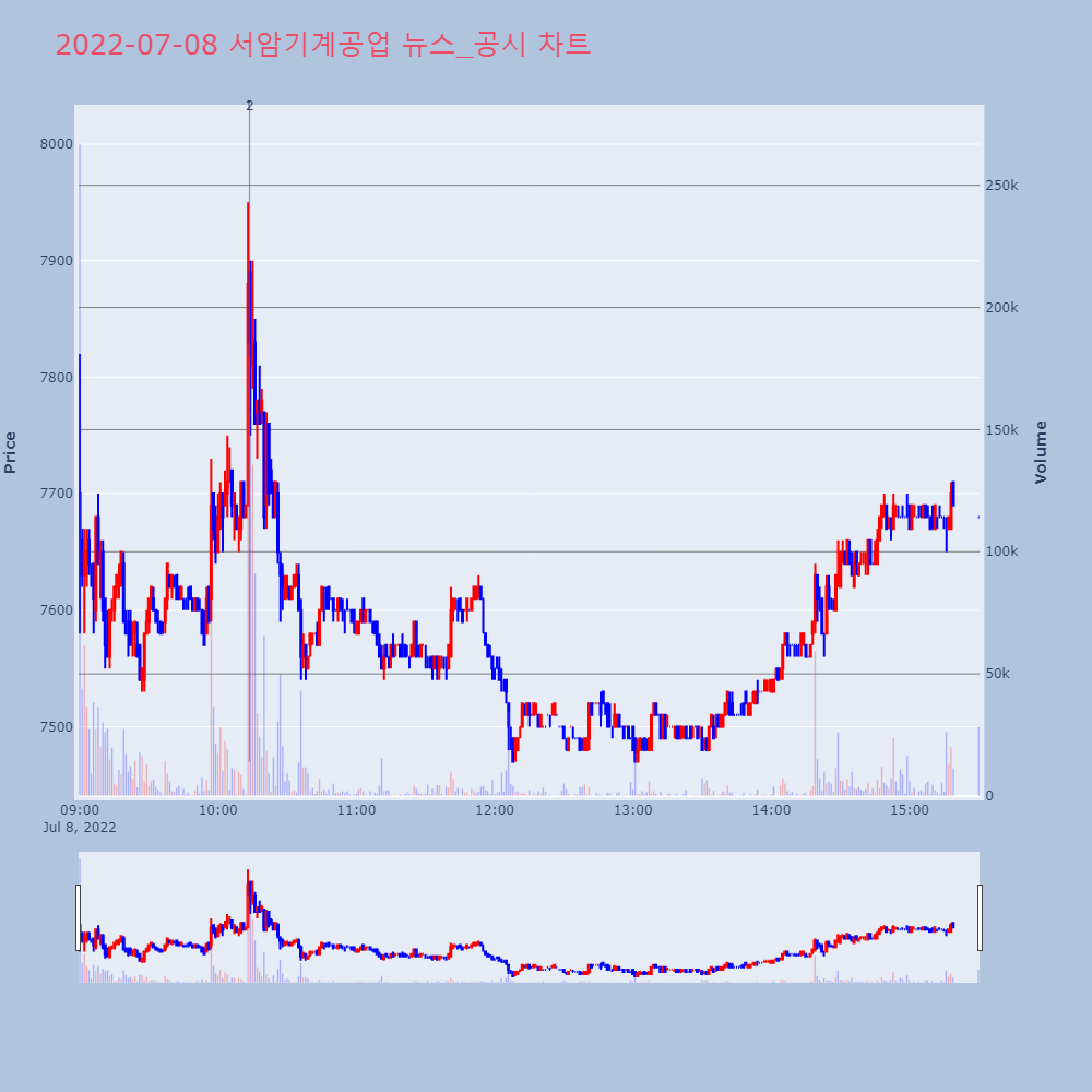 | 2 | 서암기계공업, +6.30% 상승폭 확대서암기계공업(100660)이 상승폭을 확대하고 있다. | 조선경제 | 서암기계공업 | 2022-07-08 10:13:43 |