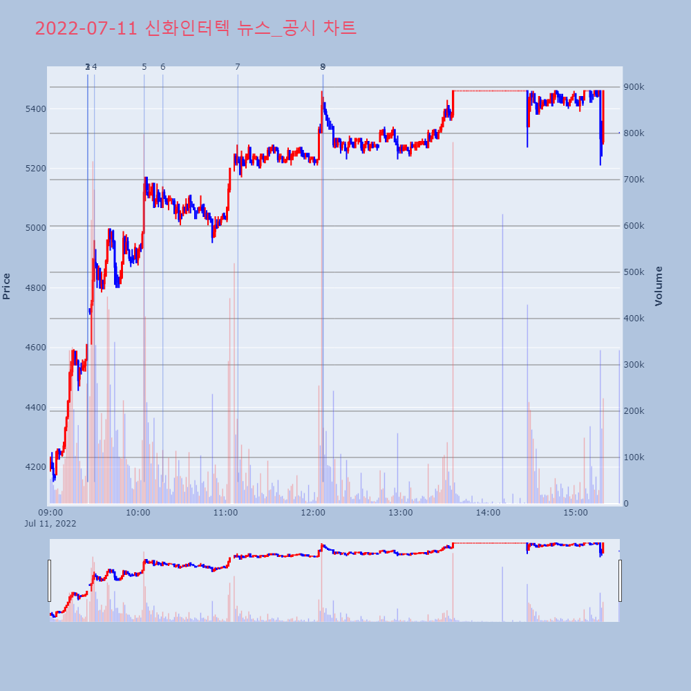 | 9 | [이시각 상한가] 신화인터텍(▲1260) - 11일 오후 12시6분[이투데이/e2BOT 기자(e2bot@etoday.co | 이투데이 | 신화인터텍 | 2022-07-11 12:07:03 |