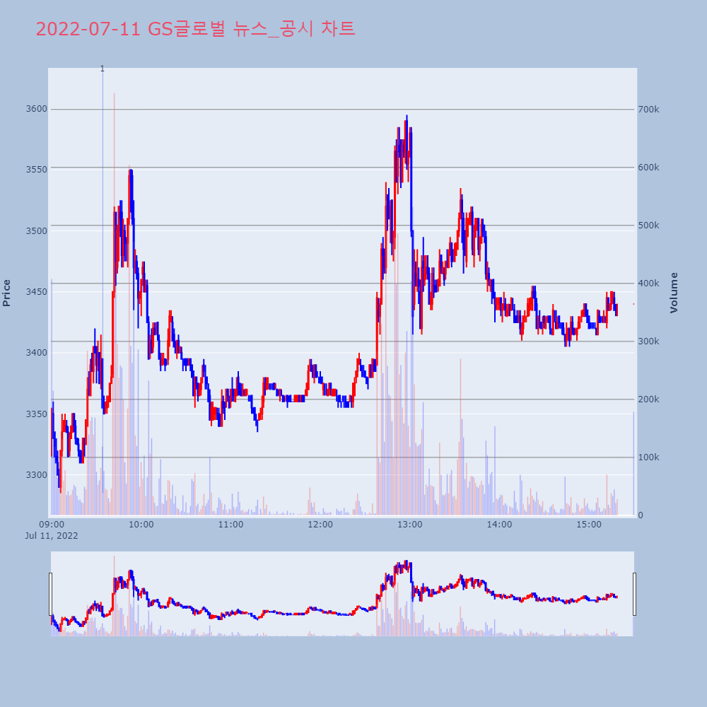 | 1 | [특징주] GS글로벌, 전력 수요 폭등에 블랙아웃 우려… 석탄발전 100% 가동제목 : [특징주] GS글로벌, 전력 수요 폭등에 블랙 | 인포스탁 | GS글로벌 | 2022-07-11 09:34:15 |