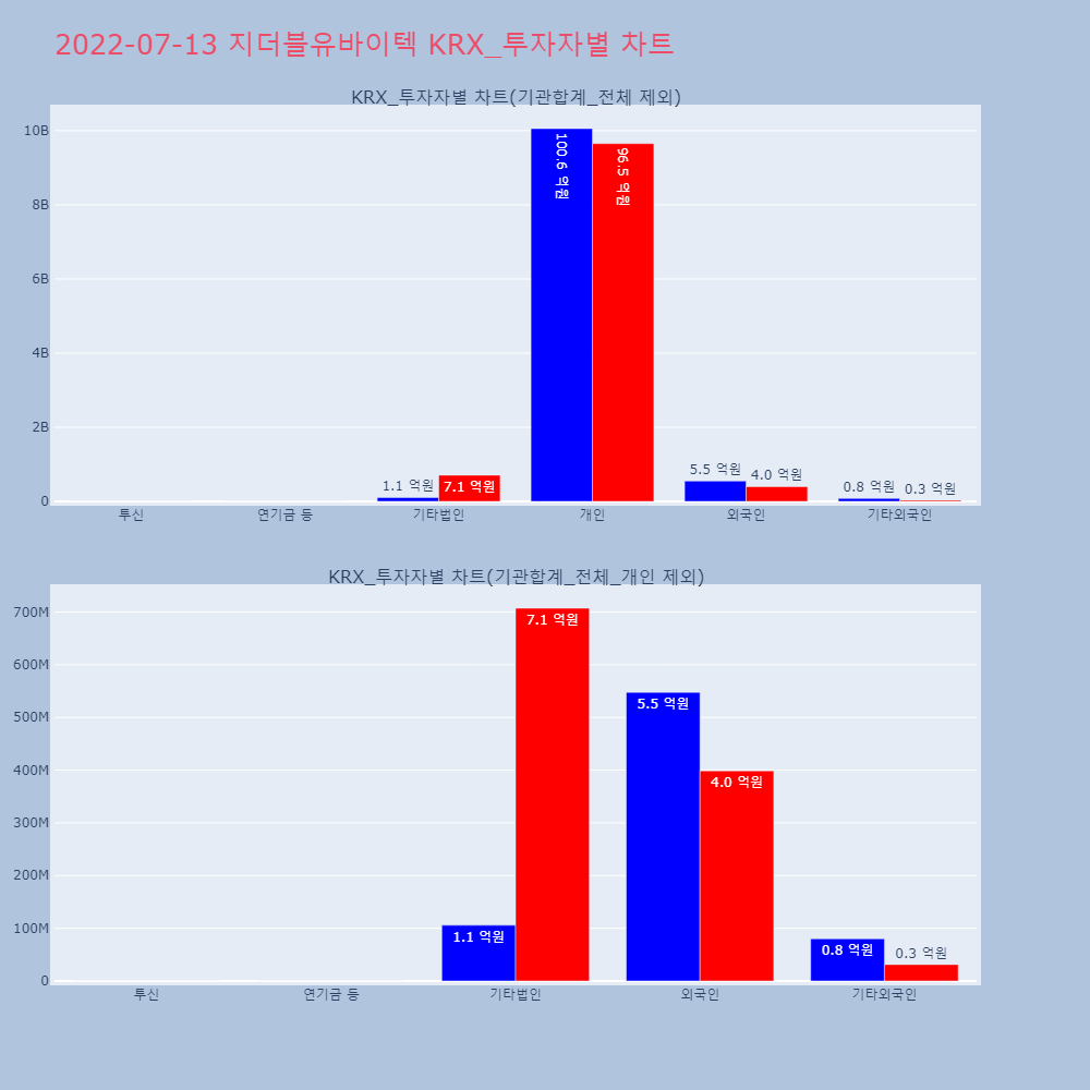 | 투자기관 | 거래량_매도 | 거래량_매수 | 거래량_순매수 | 거래대금_매도 | 거래대금_매수 | 거래대금_순매수 |