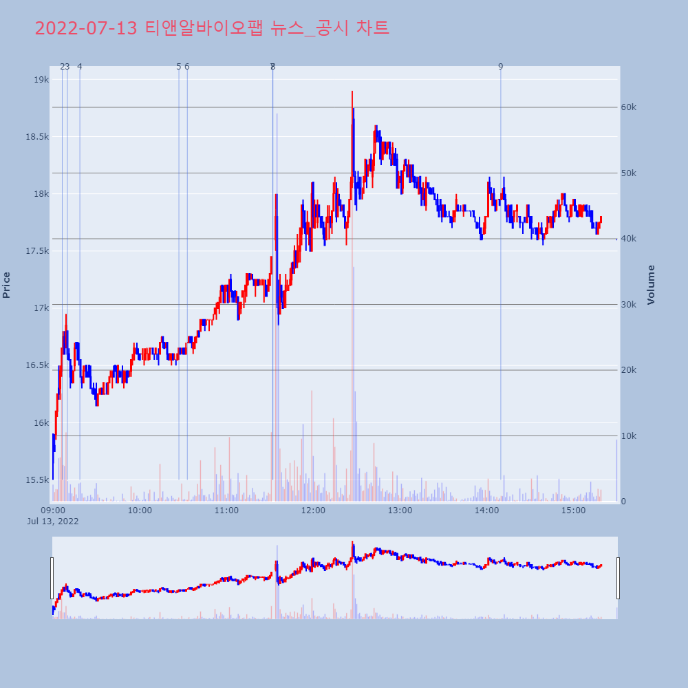| 7 | 티앤알바이오팹, +11.50% VI 발동티앤알바이오팹(246710)이 VI가 발동했다. 전일 | 조선경제 | 티앤알바이오팹 | 2022-07-13 11:32:00 |