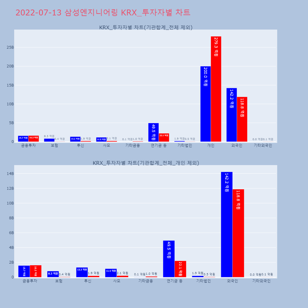 | 투자기관 | 거래량_매도 | 거래량_매수 | 거래량_순매수 | 거래대금_매도 | 거래대금_매수 | 거래대금_순매수 |