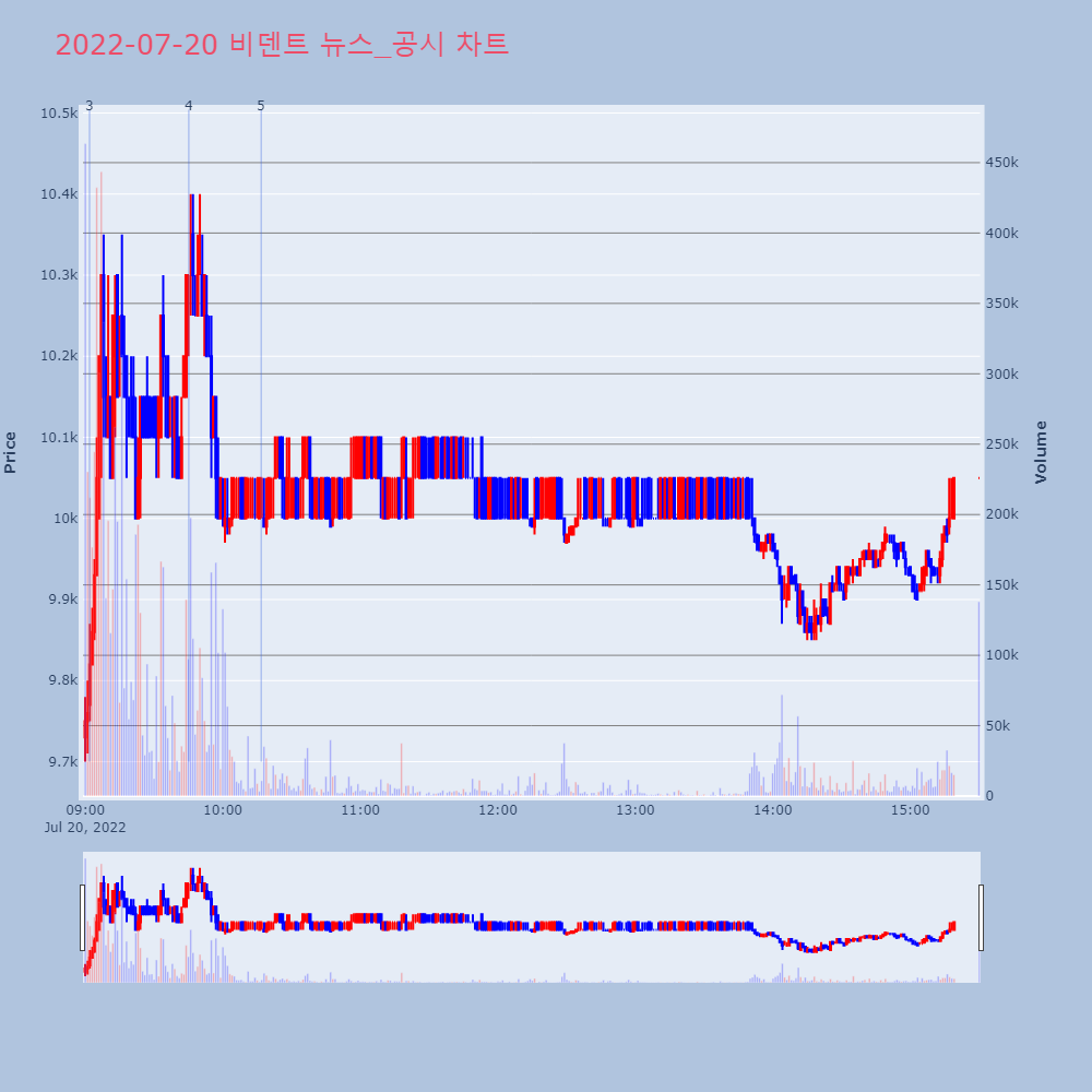 | 13 | 버킷스튜디오, +15.18% VI 발동버킷스튜디오(066410)가 VI가 발동했다. 전일 대 | 조선경제 | 버킷스튜디오 | 2022-07-20 11:17:00 |