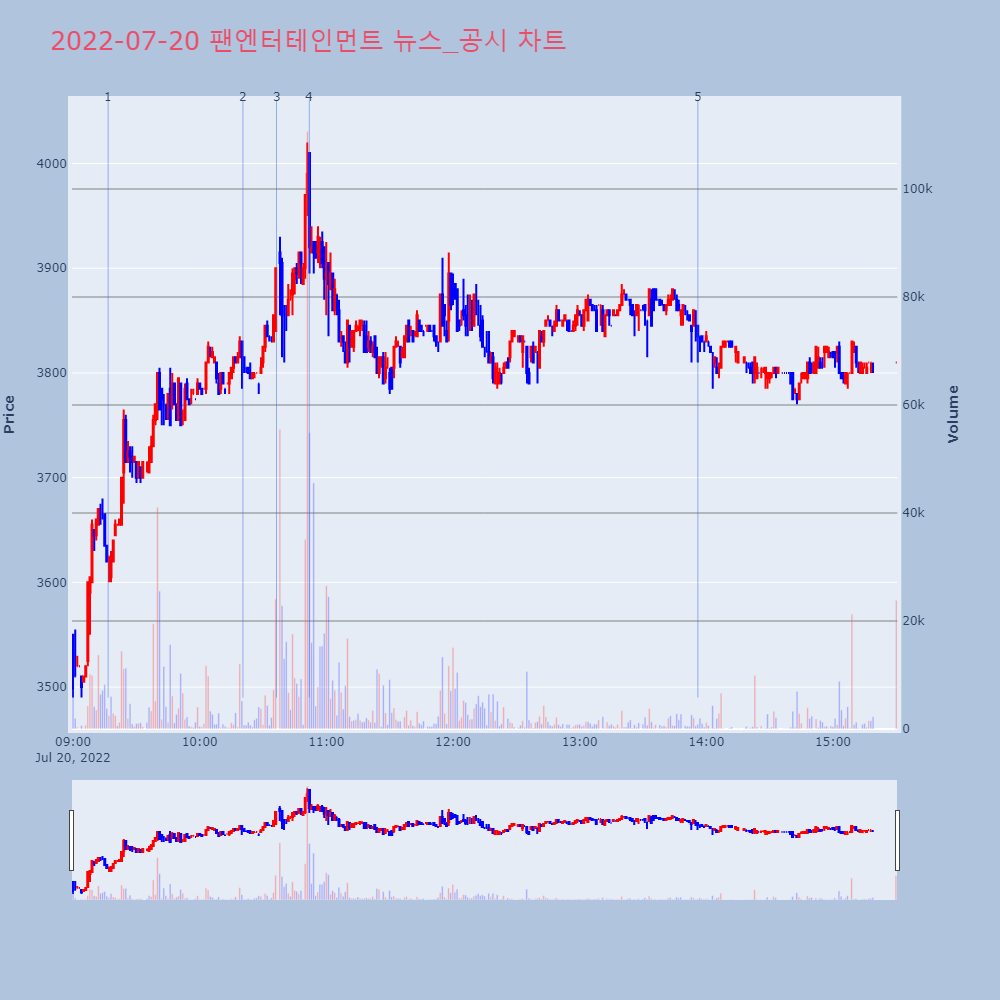 팬엔터테인먼트(068050) +10.76%[종가: 3,810원]