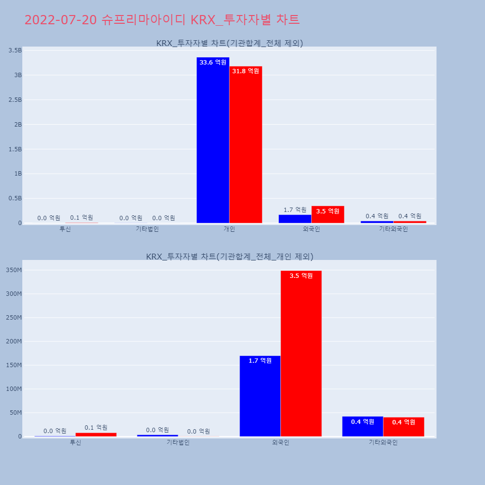 | 외국인 | 4,792,642 | 4,870,050 | 77,408 | 12,251,341,600 | 12,385,733,200 | 134,391,600 |