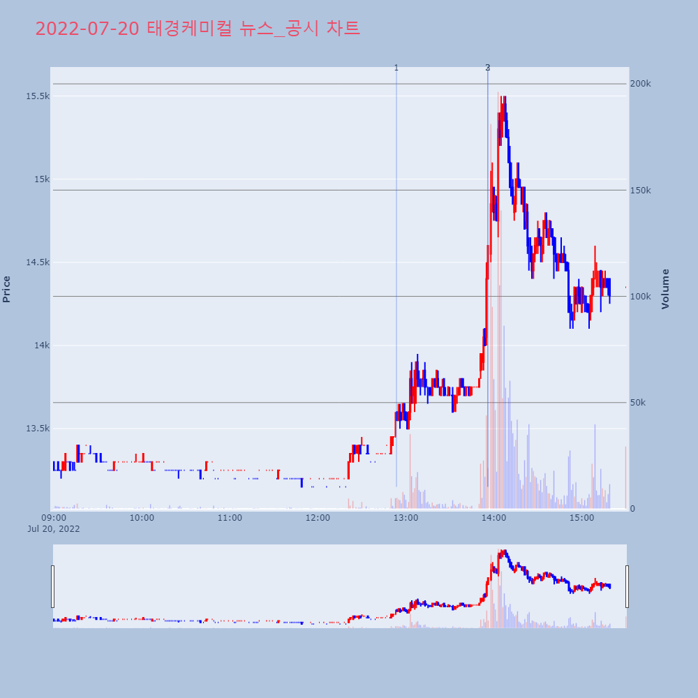 | 2 | 태경케미컬, +9.13% 상승폭 확대태경케미컬(006890)이 상승폭을 확대하고 있다. 전 | 조선경제 | 태경케미컬 | 2022-07-20 13:55:49 |