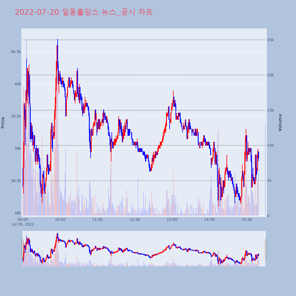 | 4 | 일동제약, -7.13% VI 발동일동제약(249420)이 VI가 발동했다. 전일 대비 | 조선경제 | 일동제약 | 2022-07-19 15:07:03 |