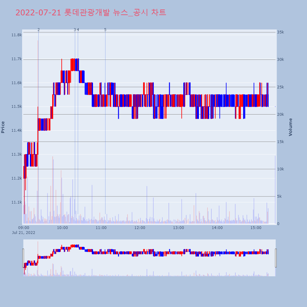 | 6 | 롯데관광개발, 주식등의 대량보유자 소유주식수 변동 제목 : 롯데관광개발, 주식등의 대량보유자 소유주식수 | 인포스탁 | 롯데관광개발 | 2022-07-21 16:43:31 |