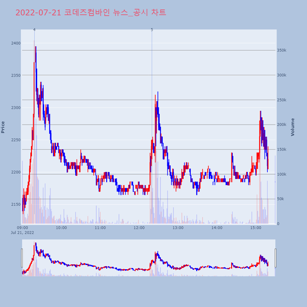 | 1 | 시간외 급등주 분석 - 코데즈컴바인(047770), 락앤락(115390)※ 본 글은 투자 참고용으로, 한국경제신문의 의견과 | 한경/증권 | 삼성전자 | 2022-07-20 08:05:15 |