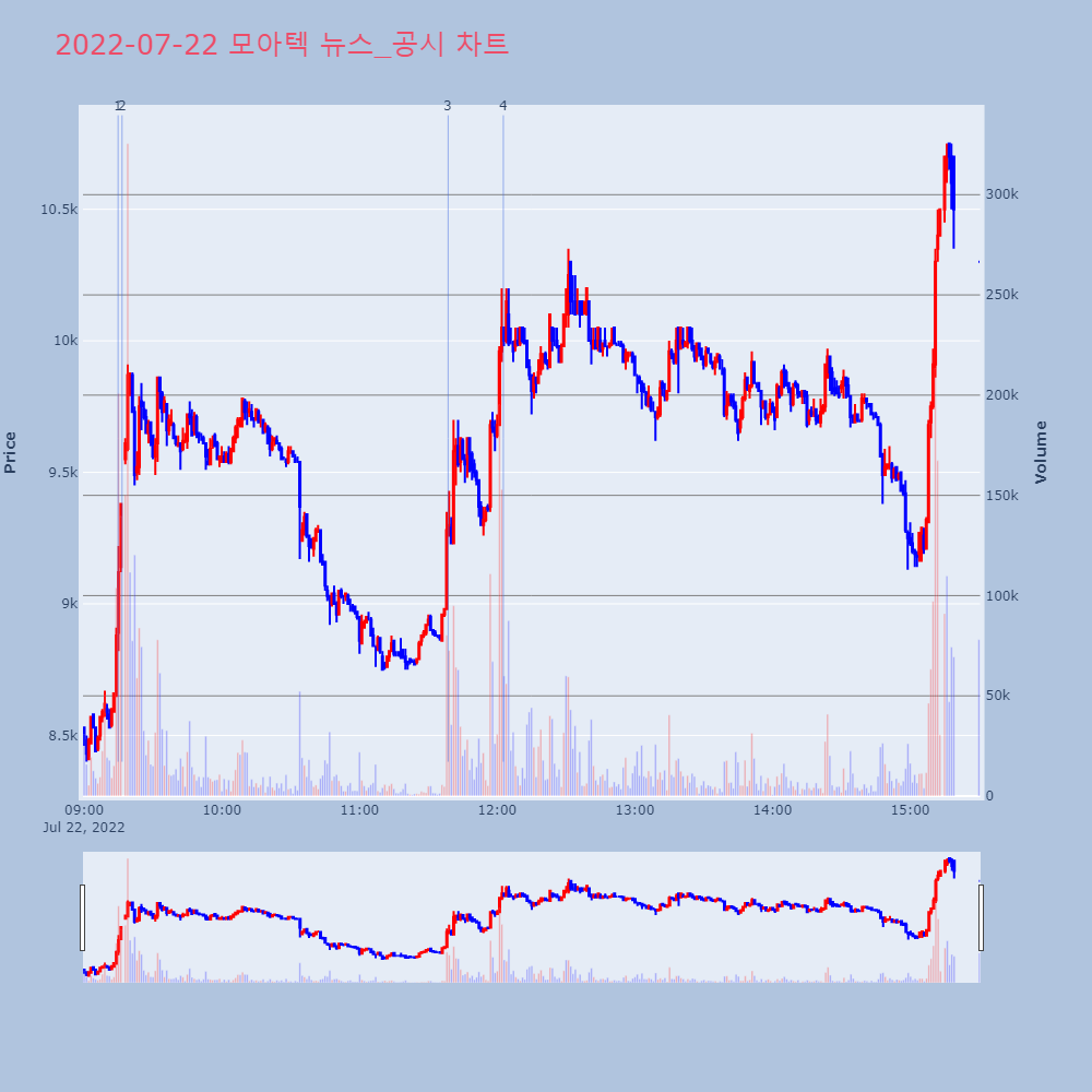 | 5 | [fnRASSI]장마감, 코스닥 상승 종목(모아텍 22.8% ↑) 22일 코스닥 시장은 상승 437개, 하락 935개, | 파이낸셜 | 모아텍 | 2022-07-22 15:40:22 |