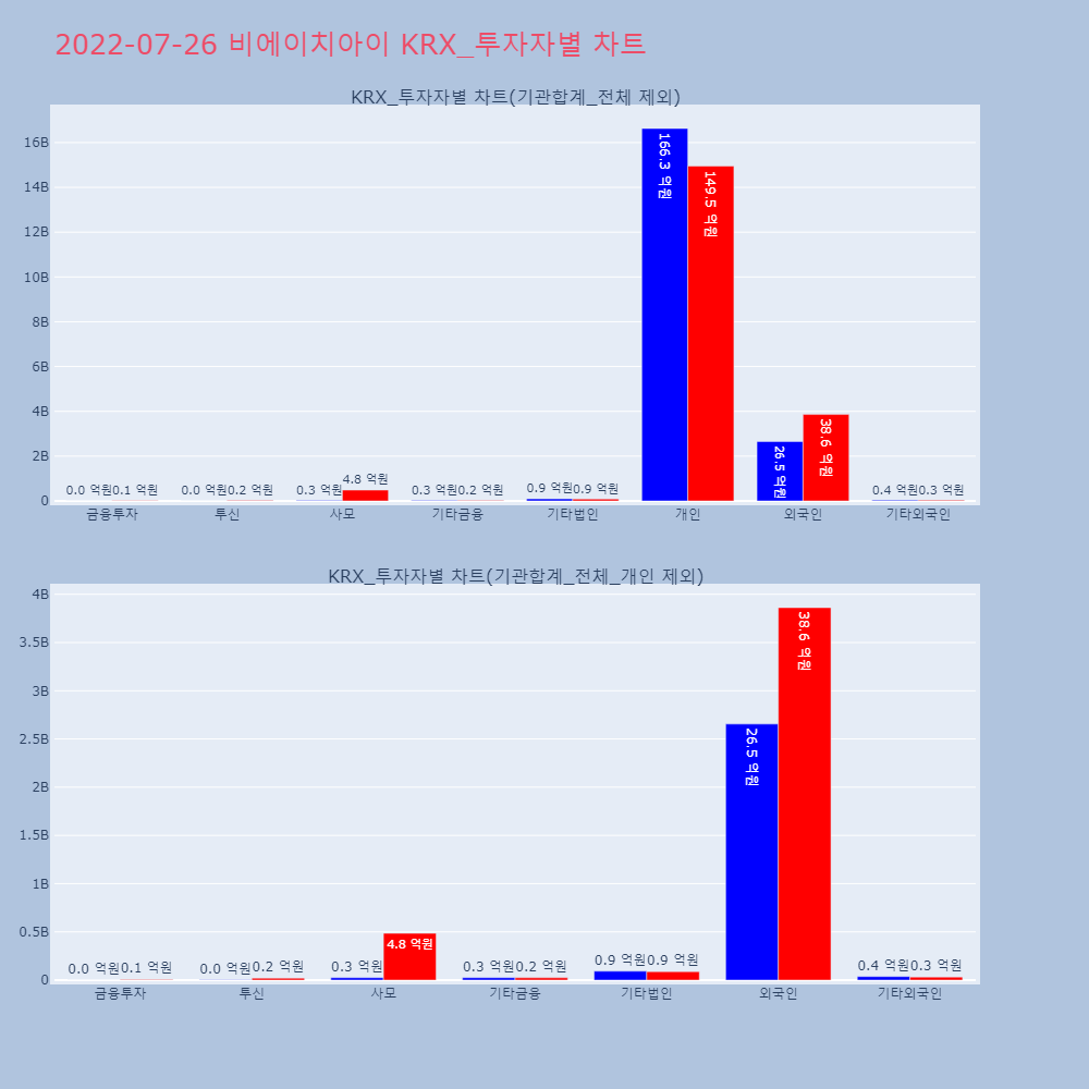 | 개인 | 17,755 | 13,512 | -4,243 | 4,077,119,900 | 3,096,258,400 | -980,861,500 |