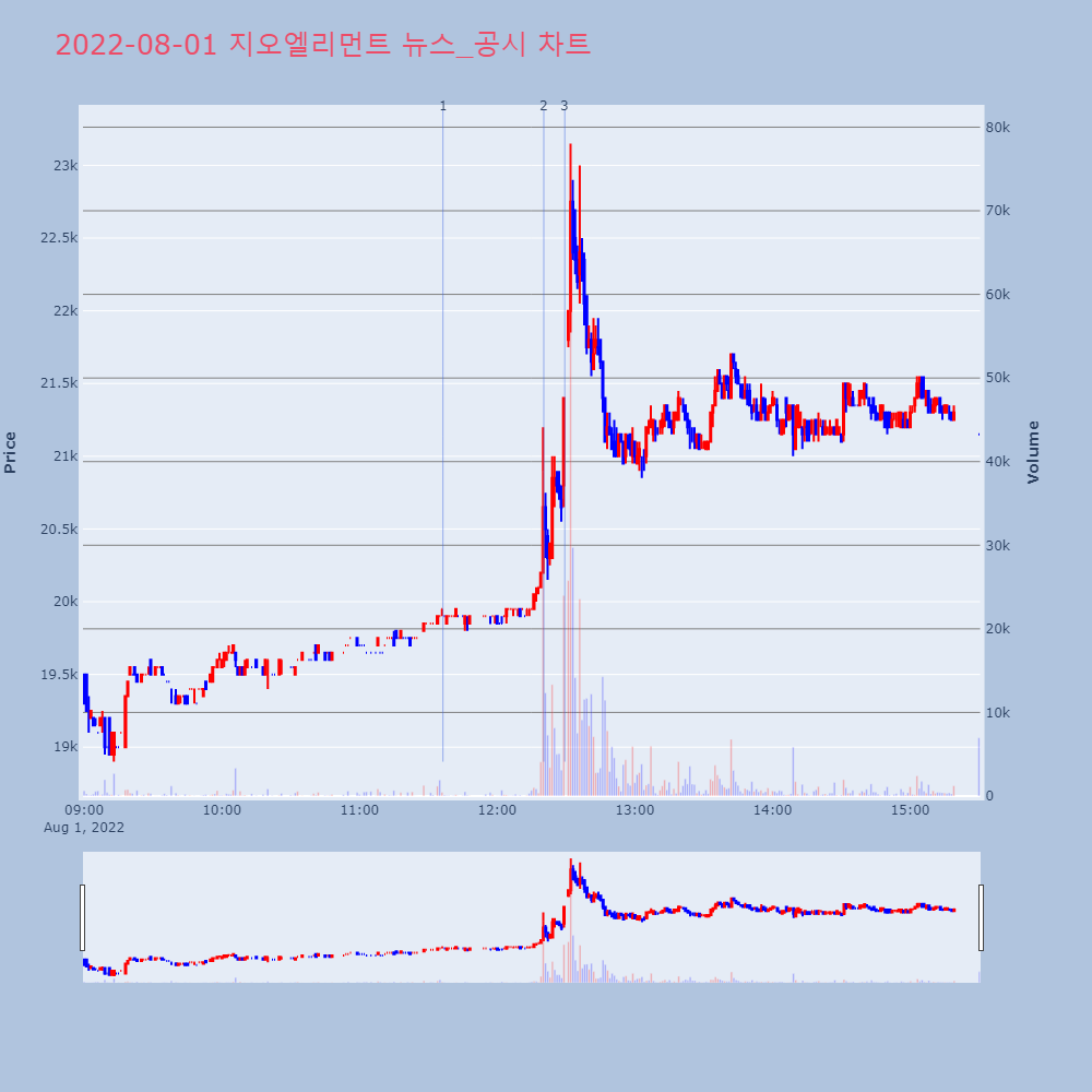 | 3 | 지오엘리먼트, +10.59% VI 발동지오엘리먼트(311320)가 VI가 발동했다. 전일 대 | 조선경제 | 지오엘리먼트 | 2022-08-01 12:29:29 |