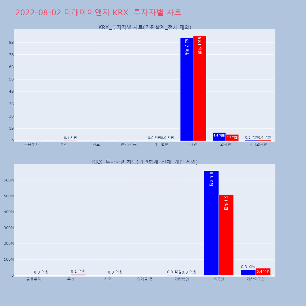 | 투자기관 | 거래량_매도 | 거래량_매수 | 거래량_순매수 | 거래대금_매도 | 거래대금_매수 | 거래대금_순매수 |