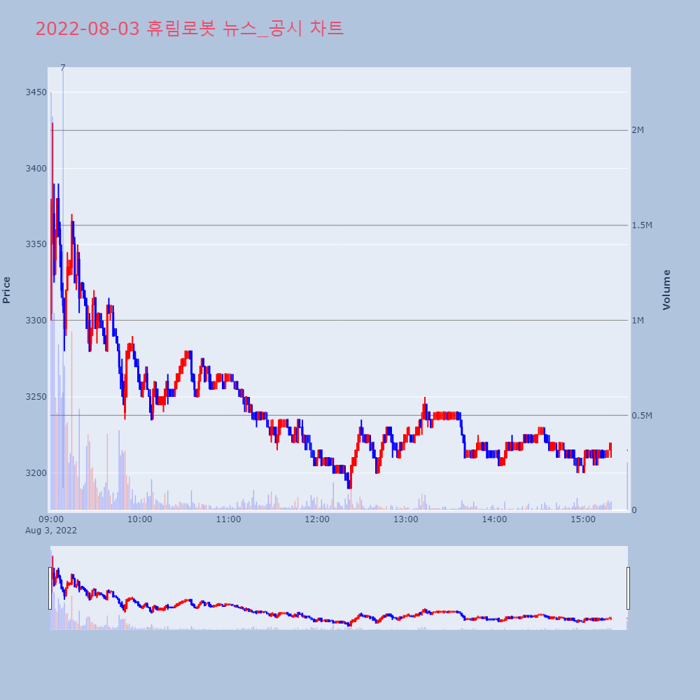 | 3 | [장초반 인기 검색 종목 PICK5] - 유일로보틱스, 원티드랩, 휴림로봇... 최적의 매매타이밍을 실시간으로 전송하여 투자자들에게 도 | 파이낸셜 | 티플랙스 | 2022-08-02 10:13:51 |