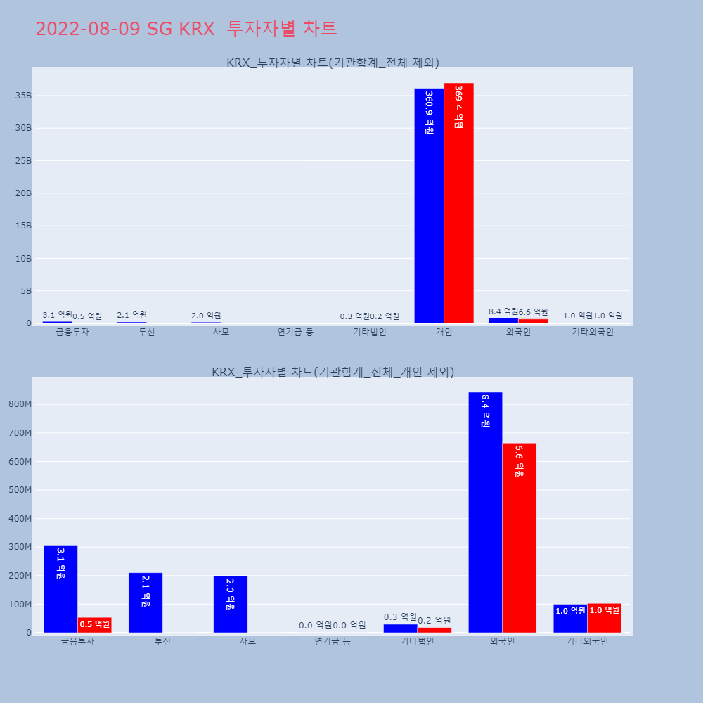 | 투자기관 | 거래량_매도 | 거래량_매수 | 거래량_순매수 | 거래대금_매도 | 거래대금_매수 | 거래대금_순매수 |