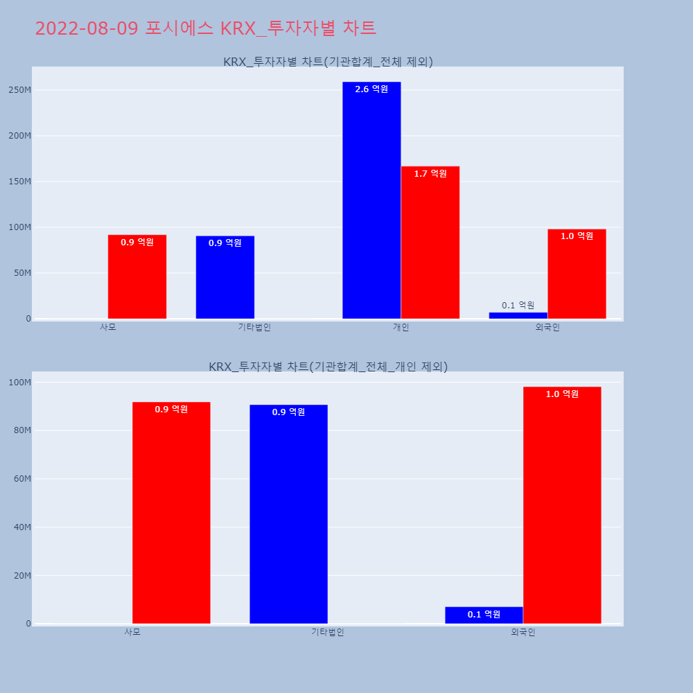 | 개인 | 694,154 | 627,785 | -66,369 | 17,475,221,250 | 15,793,476,700 | -1,681,744,550 |