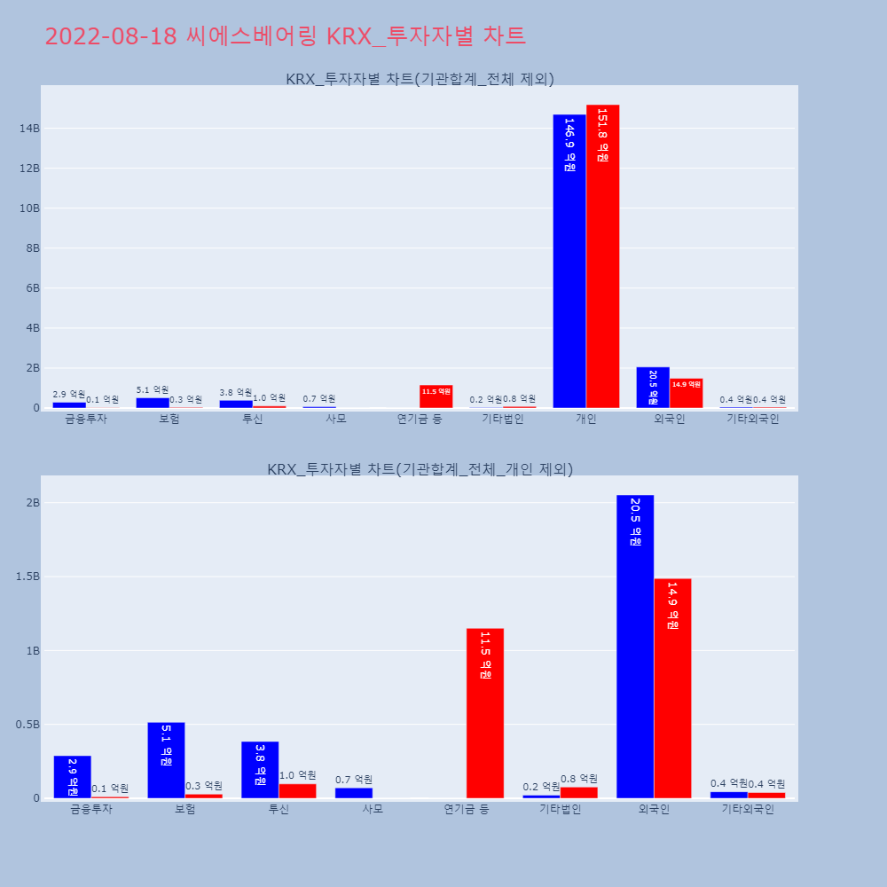 | 외국인 | 134,460 | 107,106 | -27,354 | 16,191,050,500 | 12,791,738,600 | -3,399,311,900 |