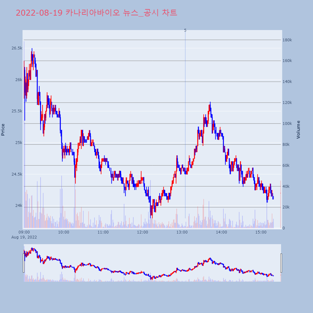 | 5 | 카나리아바이오, 무상증자 신주배정기준일 연기 제목 : 카나리아바이오, 무상증자 신주배정기준일 연기기 | 인포스탁 | 카나리아바이오 | 2022-08-19 13:05:03 |